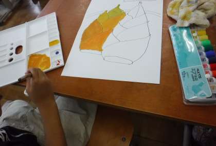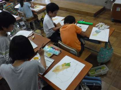 子どもたちは絵の具の量を調整しながら,色が変わっていく様子を楽しんでいました。