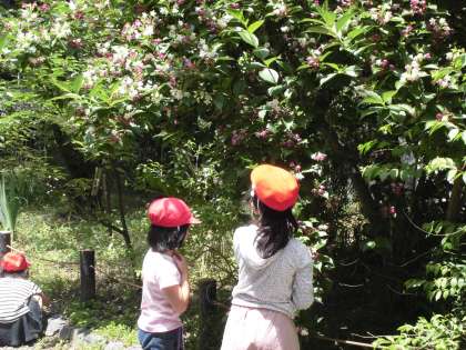 「みんなであそぼう はる なつ あき ふゆ」で平野神社の春みつけに行きました。とはいえとても暑い日で、まるで夏のようでした。桜の実・ひっつきむし(ぬすびとはぎ)・しゃくなげ・いちょうの緑の葉っぱ・きょうちくとう・ちょうちょ・あり等々たくさんの自然と触れ合いました。
