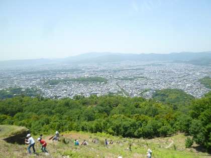 右大文字に遠足に行ってきました。晴天の中,3年生みんな元気いっぱい火床にむかって上りました。少し急な坂がある所は声をかけながら協力して上りきりました。到着した時あまりの見晴らしの良さにみんな感動していました。社会で学習している京都市内を一望することができました。