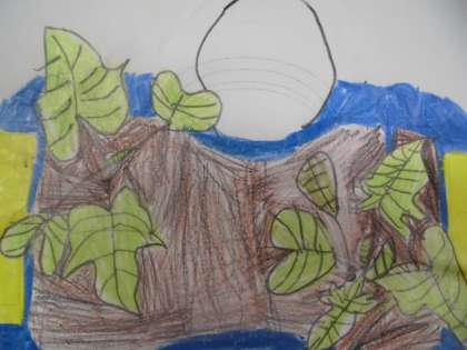 生活科では「みつけたよカード」をかいて,発見や思いを深められるようにしています。1年生はまだ,ひらがなを全部学習していないので,絵を中心にかけるようにしています。しっかりよく見てかけた力作です。葉っぱの形の違いや葉脈,茎の惟色の変化にまでよく気付いてかけています。