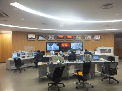 中央制御室を外から見学させていただきました。ごみが燃えている様子がカメラで見えました。約900度の高温で燃やしているそうです。