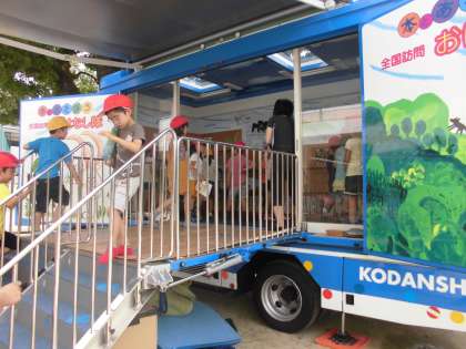 読み聞かせの後はキャラバンカーに乗って 本をたくさん読みました。とっても楽しかったです。