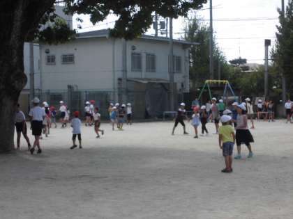 遊んでいる様子を見ていると,高学年の児童が積極的に声をかけて,みんなで楽しめる雰囲気をつくっていました。