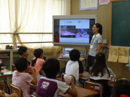 2学期からの外国語は,ALTの先生ではなく,専科の先生に教えていただきます。今日は,簡単な英語ゲームをした後,夏休みにどんなことをしたのか,先生の英語クイズに答えながら,授業をすすめていきました。過去形を学習するのは,来年なのですが,