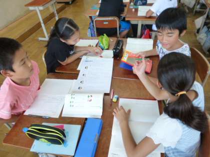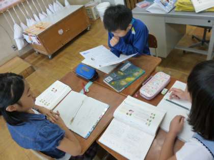 国語科で考えを明確にして話し合い,提案する文章を書く学習をしています。今日は,一人一人が考えた問題を出し合い,どの提案にするかグループ協議をしました。意見が対立した場合は,相手を受け止め,よりよい結論を見つけていくようにしました。これから,どんな提案書ができていくのか,楽しみです!!