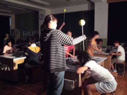地球からの月の見え方を学習するために,模型を使って学習しました。くるくる回りながら光の当たっている部分と影の部分を,自分の目で確かめることができました。
