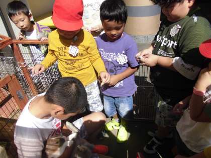 うさぎのお世話体験です。今日は出てきてくれました。お家から持ってきたキャベツをあげました。鼻がぴくぴくしてとてもかわいかったです。
