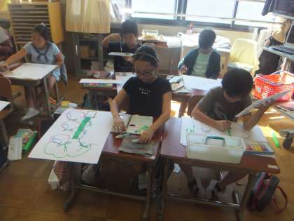 いつもは元気いっぱいの子どもたちですが,色を塗っている時はシーーンととても集中して取り組んでいます。