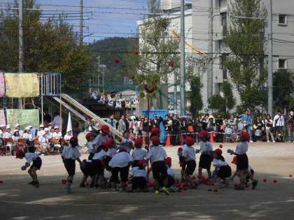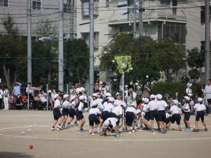 玉入れも,みんなで一生懸命かごに向かって投げ入れ,たくさんの玉が入りました。