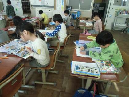 国語のじどうしゃくらべの学習のまとめとして,自分の好きな自動車のしごとや作りをしらべて「じどうしゃずかん」を作りました。図鑑や本を参考に学習したことをつかって作りました。明日は,友達と車の紹介をし合います。楽しみです。