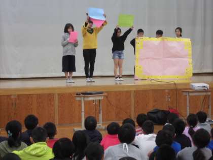 今年の標語は『みんなで笑い 笑顔あふれる 幸せの輪を広げよう!』です。楽しいから笑顔になる,笑顔になるから楽しい。みんながそんな幸せな気持ちになれるように,クラスでの言葉がけなどに気をつけて,過ごしてほしいと思います。