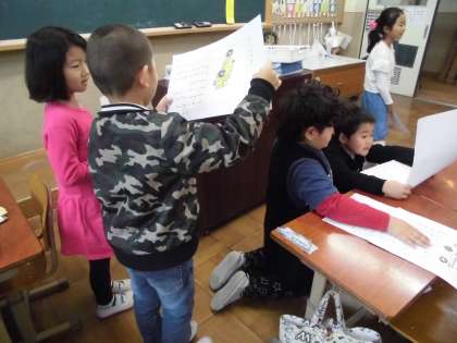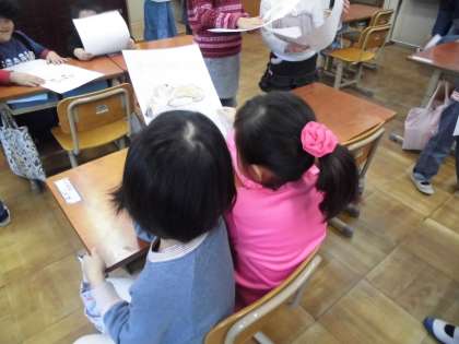 じどう車くらべの「じどう車カード」が完成しました。友達と交流会をしました。いろんなじどう車をくらべながら聞きました。いろいろな働きに応じてつくりも工夫されていることに気がつきました。
