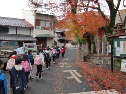 きれいな紅葉を見ながら,小関越えに突入だ。疎水は地下を通るので,しばらくお別れです。
