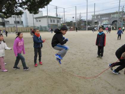1月後半には,運動委員会が企画してくれる大縄大会があります。それに向けて,中間休みに大縄を特訓中です。テンポよく,スピーディーに跳べると,回数が増えます。大縄を回してくれる人の腕も大事です。みんなで頑張りましょう!!