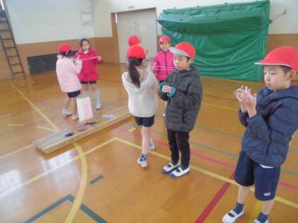 「ふゆもげんきに」で「昔から伝わる伝統的な遊び」をしました。初めてやるもの,やったことのあるものなど様々です。中でも,こままわしは,糸を巻きつけるのも難しく手こずっていました。めんこはやり方すらわからず…。どうしよう,みんな困っていました。課題発生です。