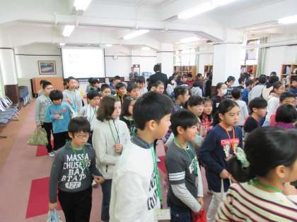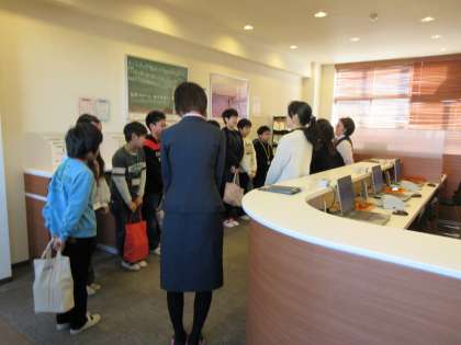 第1回ミーティングで区長のあいさつや担当の先生からの質問の後,いよいよ出勤していきます。各ブースでは,店長を中心に,一日お世話になる社員さんやボランティアの方に挨拶していました。