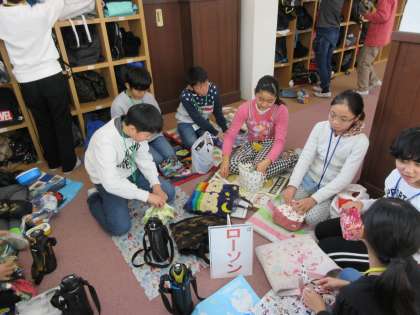 お待ちかねのランチタイムです。他校の児童と各ブースごとに,食事をします。それぞれの学校の様子を話すよい機会となったようです。