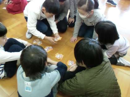 今日は児童会の主催で4年生と一緒にトランプ遊びをしました。1組は,クラブハウス。2組は多目的室でグループに分かれて「ばばぬき」をしました。4年生が,やり方を教ええてくれて,やり方を知らない1年生も楽しんで遊ぶことができました。感想では,これからも一緒に遊びたい,また,トランプしたいなど,楽しかった感想をたくさん聞くことができました。