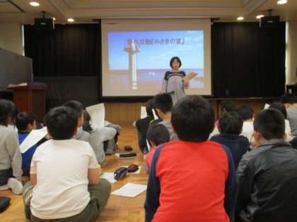 先生がたくさん撮影してきてくださった写真を見ながら,持ち物などの確認をしました。みんな初めての宿泊学習でわくわくしています。