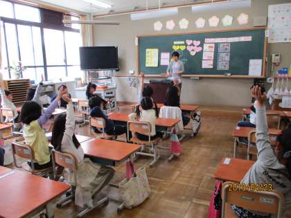 今日は栄養教諭の早田先生からお話を聞いて,給食についての学習をしました。給食の大切さやよりよい食べ方などについて楽しく学ぶことができました。こらから「給食たべ方チャンピョン」を目指してがんばりましょう。