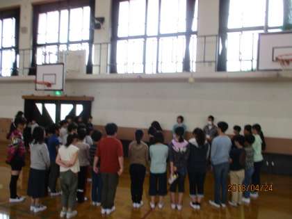 中間休みに体育館に集まり,今年度の部活動開講式をしました。自分で選んだ活動ですから,楽しみながら活動してほしいです。また楽しみだけでなく,あきらめかけたときのもうちょっとの活動を積み重ねると大きな力になることを話しました。