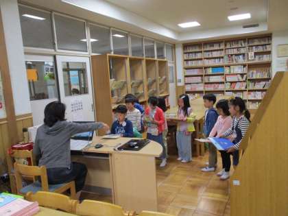 今日は図書館に行って,本の借り方と返し方について学習しました。学校司書の土田先生から手順を説明してもらった後,好きな本を選んで実際に借りてみました。これから休み時間などに図書館で本を借りることができるようになるので,ぜひたくさんの本との出会いを楽しんでほしいです。