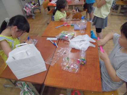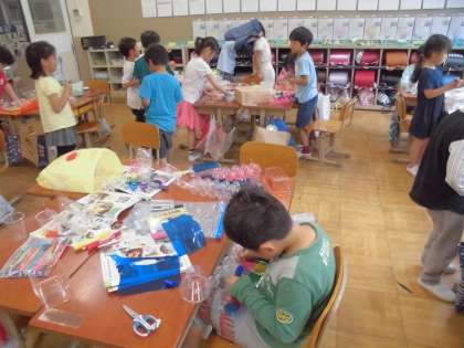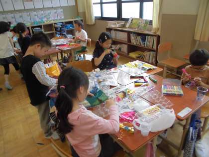 みんなで作った作品はお天気の良い日に,太陽の光にかざして鑑賞会をすることにしました。楽しみだね。