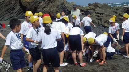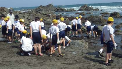 波はかなり高かったですが,磯観察は実施できました。石をひっくり返すたびに,イソガ二・ヤドカリ等が出てくるので夢中になって観察していました。