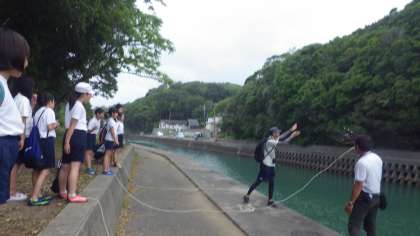 深谷水道で,カゴ漁の仕掛けをしました。一晩たったらたくさん魚が入っていることを願いながら…。カゴの中には餌のオキアミが入っています。