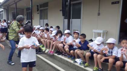 ほっこりタイムでジュースで喉を潤した後,今はオリエンテーションで寝具の使い方を習っています。それほど暑くもなく,いい天気です。