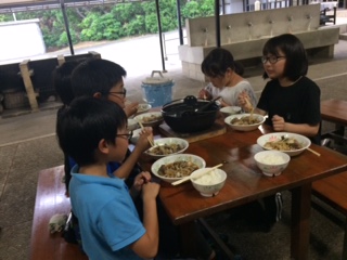 野外炊事で協力して,とても美味しいすき焼き風煮を作りました。味のいいのはもちろんですが,そこには助け合いの美味しいスパイスも加わっています。