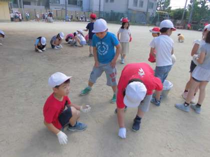 今日はクリーンキャンペーンで全校のみんなで学校をきれいにしました。2年生は運動場の石拾いや落ち葉拾いをしました。とってもきれいになりました。みんなよくがんばりましたね。