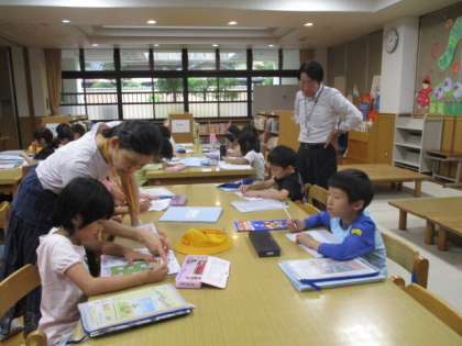 今日から1年生の放課後学び教室が始まりました。開講式では,教育委員会の先生のお話を聞き,教室の約束事を聞きました。その後,さっそく学習に取り組んでいました。わからないところがあったら,どんどん聞いて,前に進みましょう。