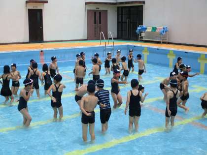 低水位なので,わにさんになったり,アシカさんになったり,ニワトリじゃんけんをしたりしました。とても楽しかったです。