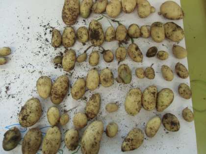 今日は2月に植えたジャガイモの葉が黄色くなってきたのでを収穫しました。65個収穫できました。今日持って帰ったので,どんな料理に変身するのか楽しみにしています。