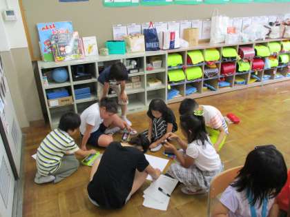 6年生のリーダーを中心に,低学年の子どもからも意見を聞きだして,グループのみんなで話し合っていました。