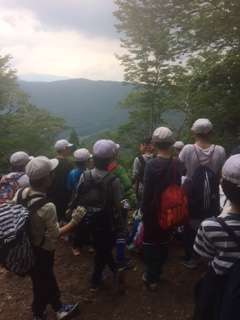 登山中です。途中で山の家が見えますが、やっほ〜と叫ぶと、お互いに聞こえました。元気です。