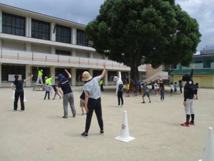 今日はPTAの行事でサンガつながり隊を実施していただきました。 サンガからコーチも来ていただき,体振のご協力でラジオ体操からスタートです。運動場で軽くペアの運動をしました。霧雨が降ってきたので後半は体育館で親子で楽しくサッカーのミニゲーム