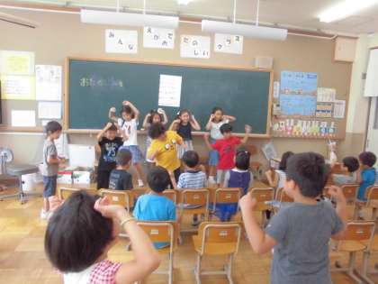 おたのしみ会をしました。クイズ 合奏 ダンス をそれぞれが披露しました。