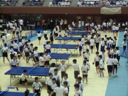 部活動の卓球のみんなで参加しました。1000人近くの4・5・6年生が集まりました。どきどきのみんなでしたが,一生懸命プレーする姿がたくさん見られました。