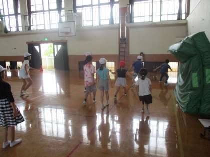 体育館では,「どんじゃんけん」「だるまさんが転んだ」「大縄跳び」など,グループによっていろいろな遊びを楽しんでいました。