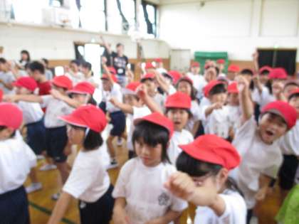 運動会の応援練習がありました。各色ごとに体育館に集まり,高学年の応援団の係のみなさんが,応援のし方を丁寧に教えてくれました。三々七拍子や赤組コール・白組コールなど,色々な応援の仕方があることがわかりました。さっそく1年生も大きな声を出して応援練習をがんばっていました。