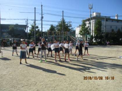 高い雲まで届きそうな大きな声での練習でした。また進行係・準備運動係は開閉開式の練習です。当日は大勢の皆さんの前で話をしたり,準備体操をしたりするのでちょっと緊張気味でした。朝晩が急に冷え込みようになり,風邪気味の子どもも出てきました。手洗い・うがいの励行をお願いします。