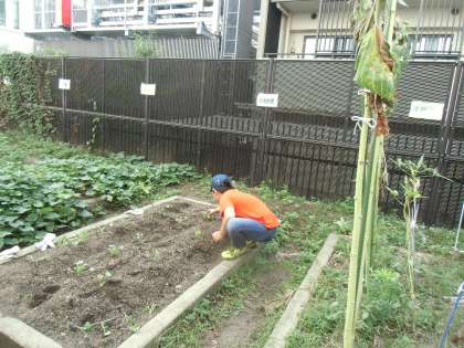 生活単元の学習では,大根の間引きをしました。これから,葉が食べられないように気を付けながら大きくなるように世話をがんばります。