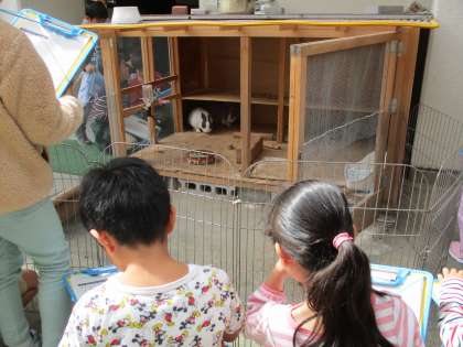 今日は学校で飼っているうさぎの様子を観察し,健康状態のチェックとスケッチをしました。これから実際にうさぎに触れ合ったりお世話したりしていきます。生き物に親しみをもち,命の大切さについて考えていければと思います。