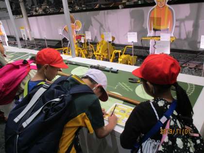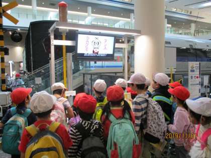 1年生のなかよしペアで鉄道博物館に行きました。たくさんの列車の実物の大きさに歓声をあげて喜んでいました。また,複雑な列車のしくみの説明やジオラマの見学では,真剣な顔で話を聞く姿も見られました。お天気も良く,気持ちの良い風が吹く梅小路公園で,仲良くお弁当を食べてから楽しく遊んで帰りました。