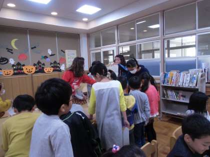 11月5日から8日めで読書週間です。今日は中間休みに低学年がクイズラリーに挑戦しました。たくさんの子どもたちが図書館の中を本をさがしながら答えをみつけていました。