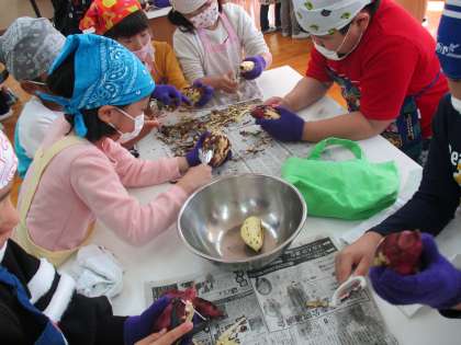 おいもの皮むきをしました