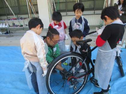 子どもたちも真剣に取組んで,ブースによってはおしゃべりが一切ないところもあります。 分析・解析オペレーター 銀行員 サイクルショップ のようすです。