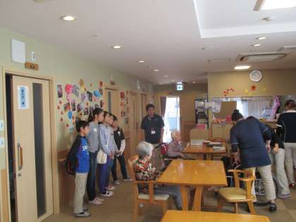 介護士体験では,エクセレント衣笠さんに移動して,介護施設の様子を紹介していただいたり,実際に車いすの体験などをさせていただきました。